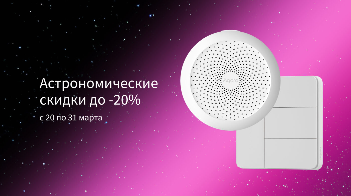 В честь начала астрономической весны дарим скидку до 20% на ассортимент Aqara при оформлении на сайте с 20 по 31 марта!