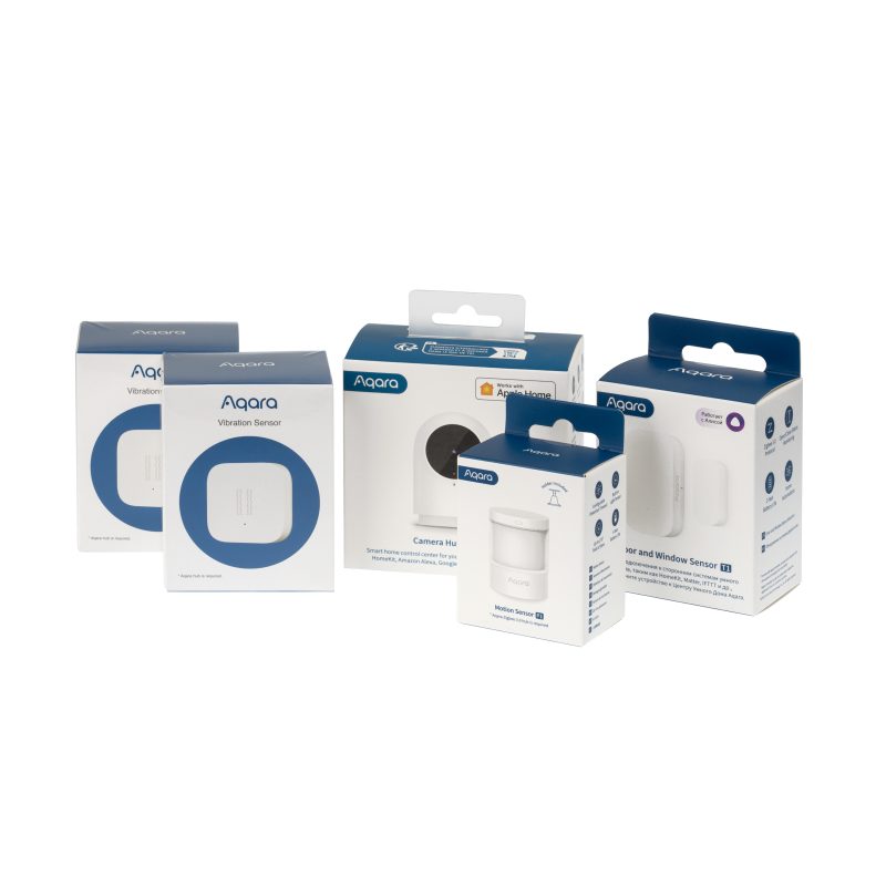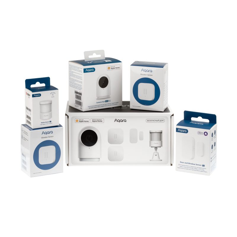 Полноценный комплект защиты: Центр умного дома (хаб) и датчики.