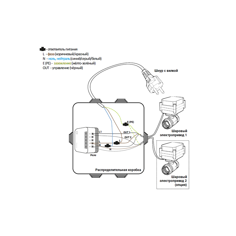 К электроприводу подключается выключатель или реле. Перекрывайте воду удалённо или настройте автоматизацию.