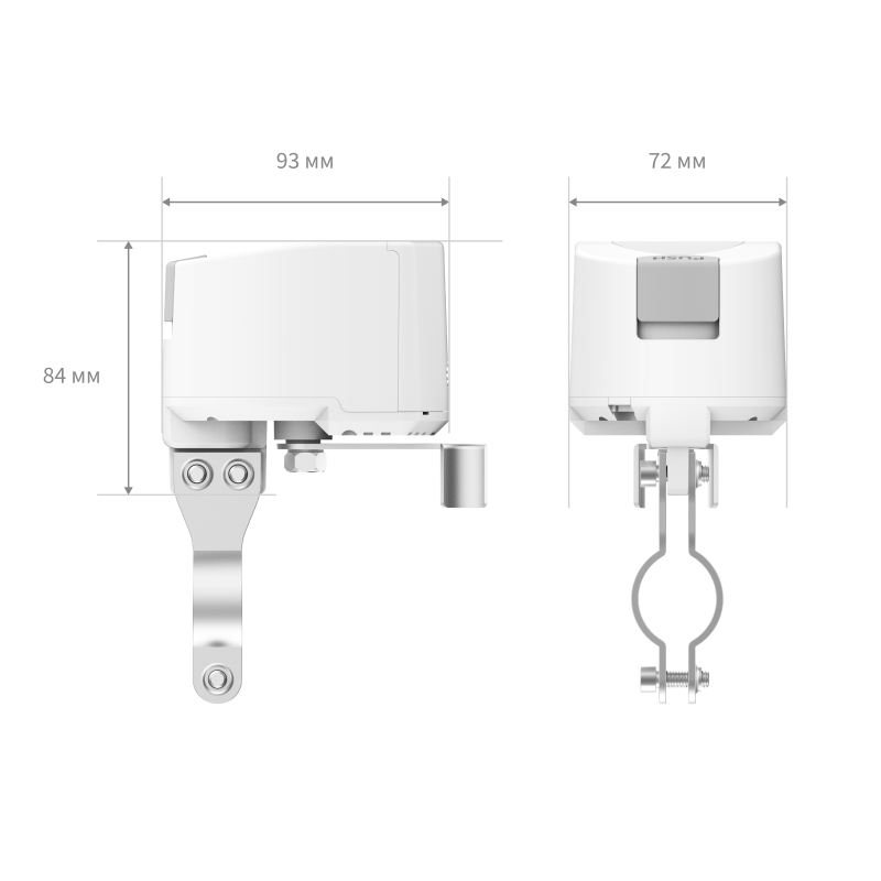 Закрепите 2 части монтажного кронштейна на трубе с помощью винтов и поднесите устройство к крану, зафиксируйте поворотный рычаг на ручке крана. Более подробную информацию об установке можно посмотреть в инструкции, расположенной в конце карточки.
